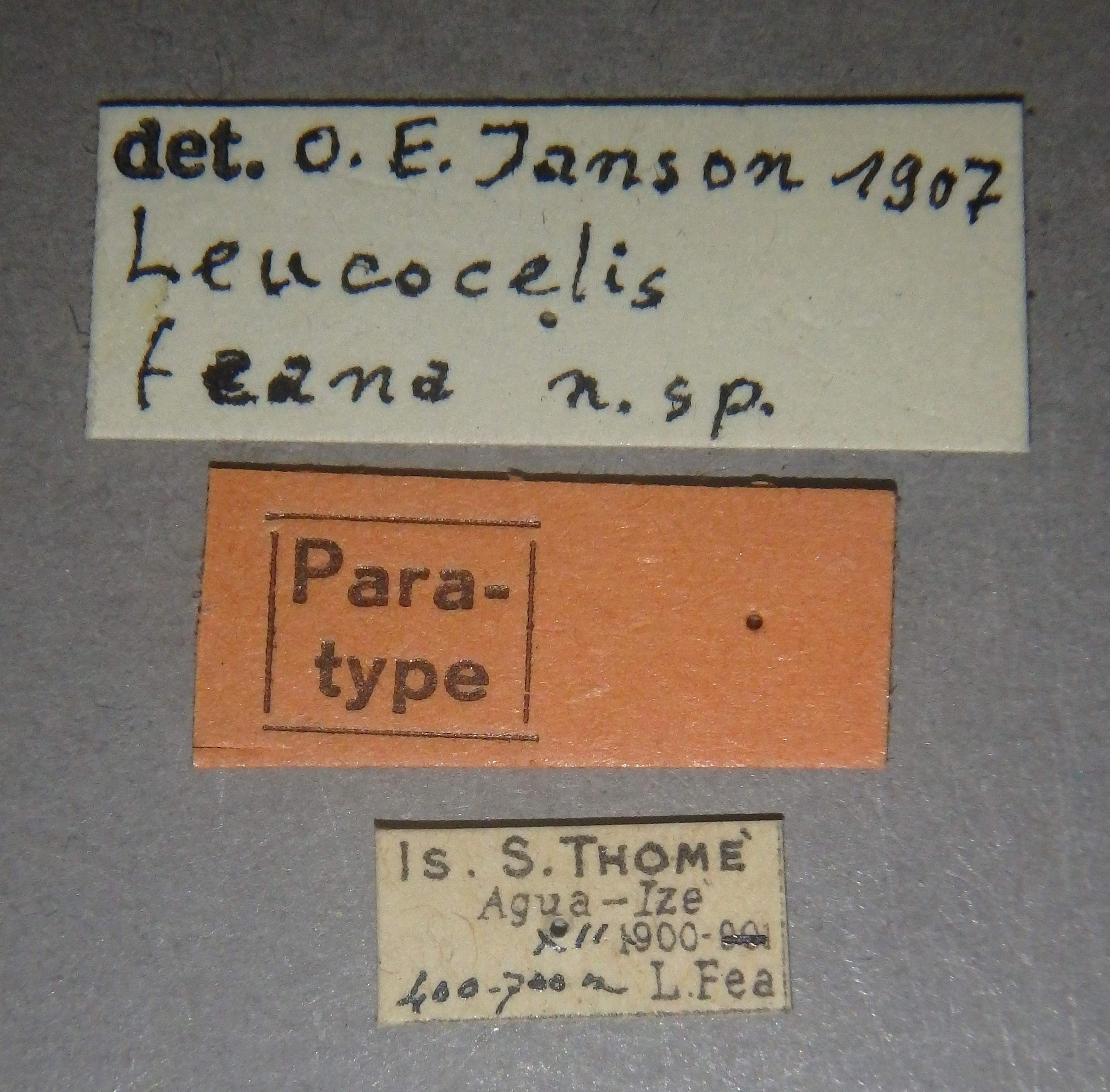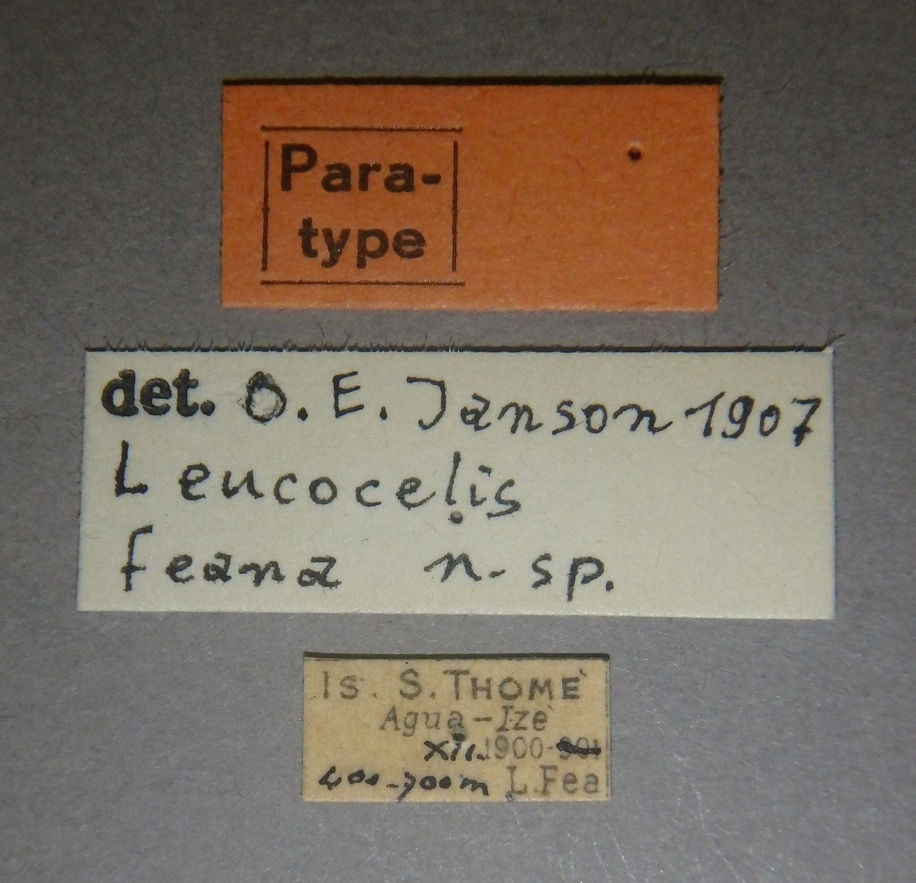 | Leucocelis feana Janson, 1907 | Paratype | F | IRSNB | Royal Belgian Institute of Natural Sciences | Is. S. Thome | Agua-Ize | XII-1900 | FEA Leonardo | |