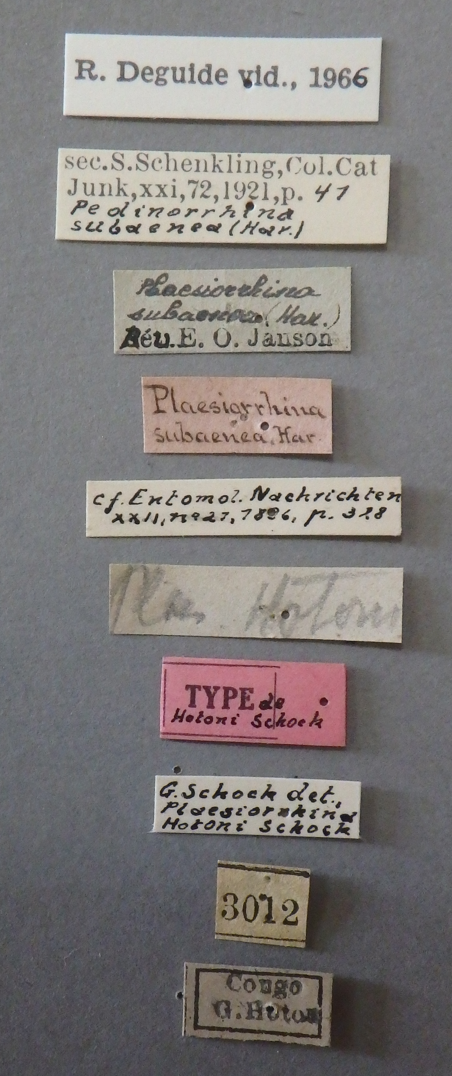 | Plaesiorrhina (Pedinorrhina) subaenea (Harold) |
